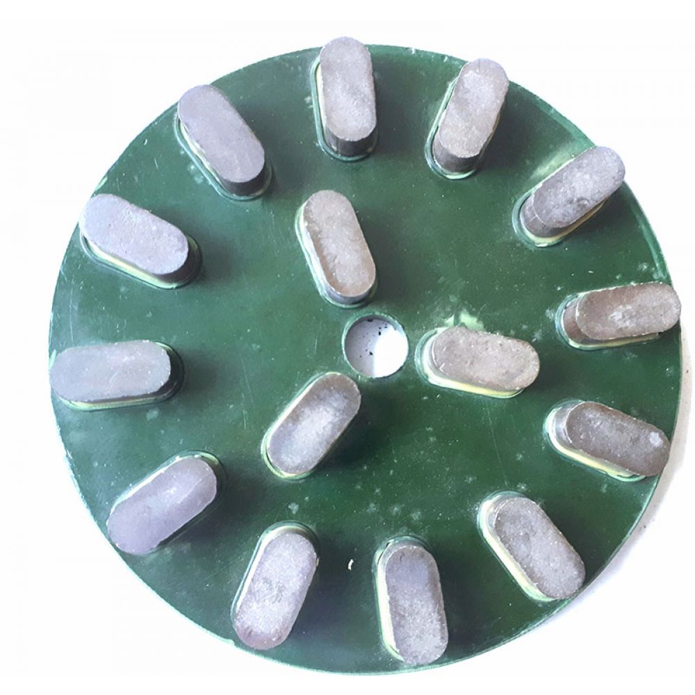 Фреза алмазна торцева пластик №1500 зелений діам. 250 Екстра використовується для мокрої шліфовки і полірування натурального каменю, таких як мармур, граніт, базальт, габро та ін. Застосовуються на коліно-важільних камнешліфовальних верстатах і полірувальних лініях, тип кріплення планшайба дозволяє в процесі роботи швидко змінювати інструмент збільшуючи продуктивність. Полірувальний диск купити за доступною ціною в Україні з доставкою в регіони. Інтернет-магазин алмазного інструменту Кам'яний бобер пропонує співпрацю і знижки оптовим покупцям.