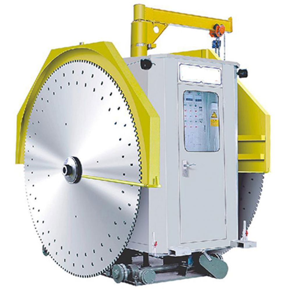Дводисковий кар'єрний верстат призначений для видобутку натурального каменю на каменедобувних кар'єрах. Підйом і опускання головного шпинделя контролюються гідравлічним тиском. Перевагами є невеликий зазор, невелике зношування, відсутність вібрації, стабільна структура і висока точність різання, а також збільшений термін служби ріжучої головки. Циліндричний направляючий ролик повністю герметичний, щоб гарантувати відсутність забруднень на напрямних, верстат має оригінальну систему змащення, тому термін служби і коефіцієнт використання ефективно збільшуються, а час обслуговування і витрати скорочуються.