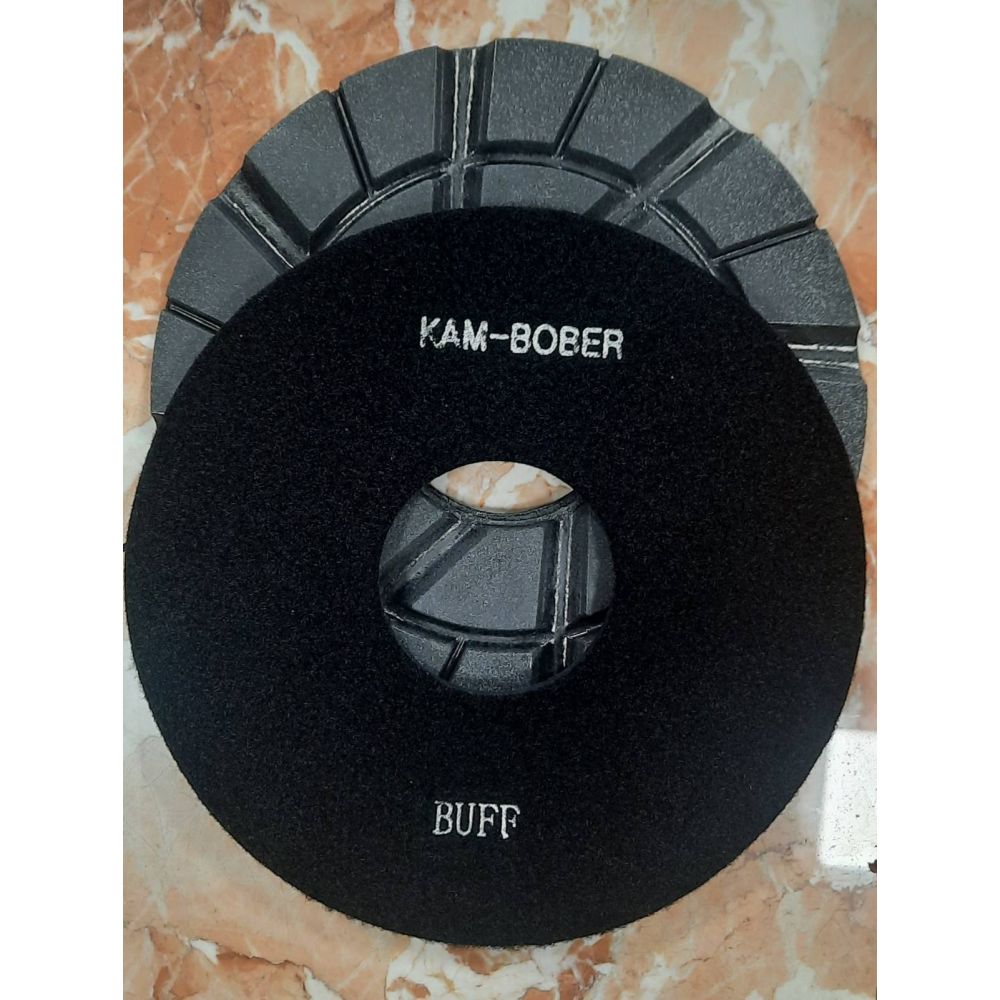 Баф Екстра чорний, повстяно-порошковий Ø 250мм. Використовується для фінішного полірування натурального каменю, таких як мармур, граніт, базальт, габро та ін. Застосовуються на коліно-важільних каменешліфувальних верстатах і полірувальних лініях. Тип кріплення планшайба дозволяє в процесі роботи швидко змінювати інструмент збільшуючи продуктивність. Також розрізняються за кольором Баф, чорний використовується для полірування темних порід каменю.