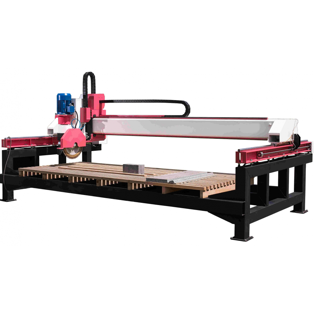 Верстат окантовочний Bridge Saw 1500 * 3500 використовується для окантовки і розпилювання природного каменю, як в ручному так і в автоматичному режимі. Обладнаний модулем для профілювання в запрограмованої формі по прямій розміщеної паралельно осі X. Оснащений системою управління верстата PLS-4 осі (X, Y, Z, C).