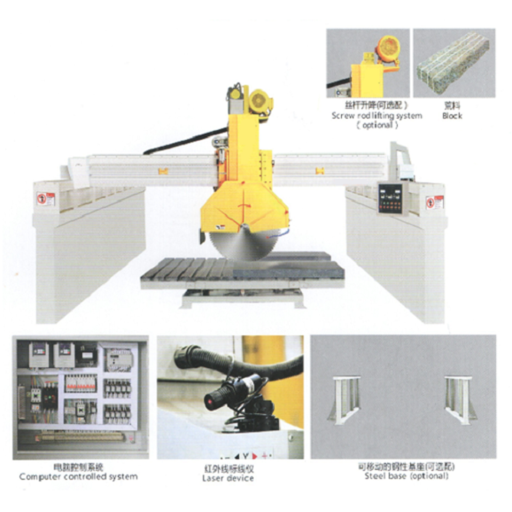 Данный станок является очень популярным и зарекомендовал себя, как надежный основной станок на камнеобрабатывающих предприятиях. Оснащен лазерным указателем реза, программированием повторяющихся резов, пошаговое пиление, распил за один проход. Конструкция станка выполнена из высоколегированной стали, что придает станку высокую надежность и качественный рез.