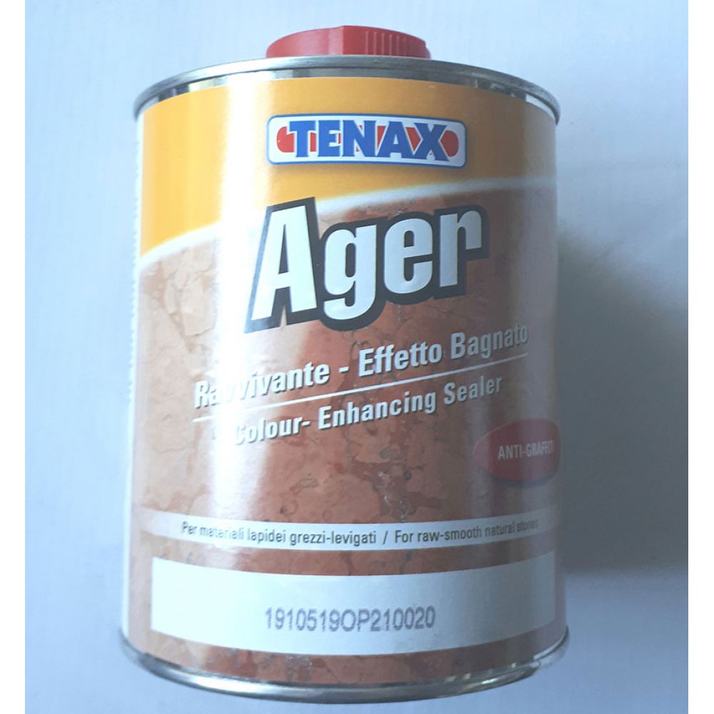 Покриття AGER, ефект мокрого каменю 1 л. Tenax (Італія) застосовується для обробки натурального каменю граніт, мармур, агломерату і травертину. Призначений для посилення кольору підкреслюючи фактуру матеріалу, надаючи мокрий ефект. Антиграфіті, стійка до ультрафіолету, відносно безпечна при контакті з харчовими продуктами, зберігає свої властивості до 5 років.